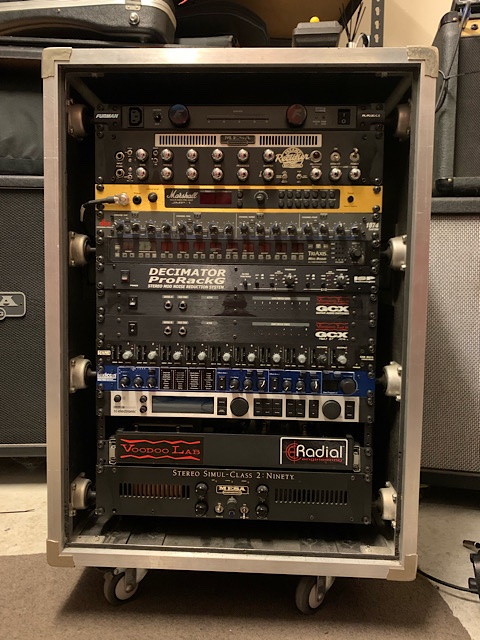 Well I’ve been at it again and switched it all around. I have 2 different racks now each with its own power supply, power amp and 2 preamps. Just need another couple of cabs